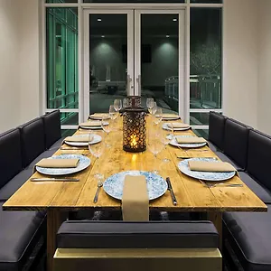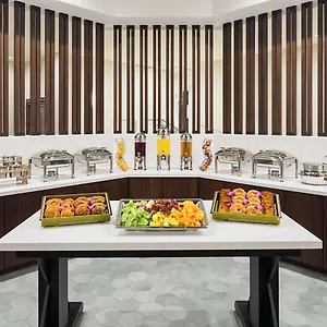 The rooms at Doubletree have blackout drapes, individual climate control, and an iron. Some of them comprise a sitting area and a dining area, appointed with a sofa set. Furnished with king-size beds, they also have a stone fireplace and floor to ceiling windows. Bathrooms include a separate toilet and a shower, along with comforts such as a hairdryer and towels.